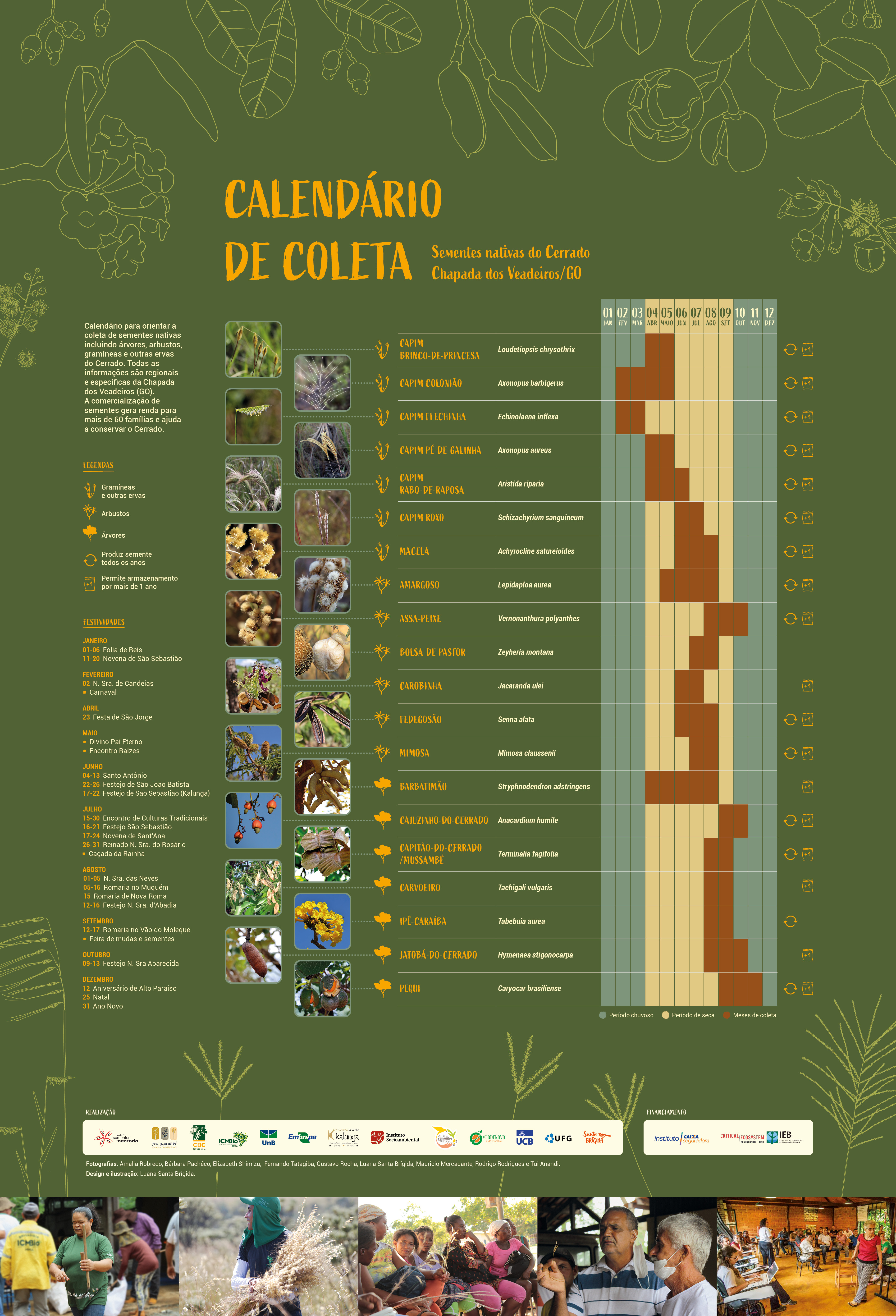 Calendário de coleta de sementes nativas do Cerrado, com informações específicas da Chapada dos Veadeiros, para auxiliar o planejamento anual de coletores.