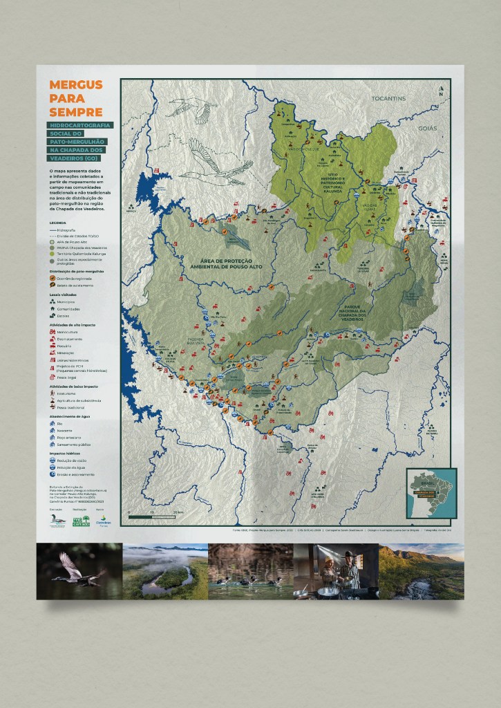 Projeto executado por Fundação Mais Cerrado e apoio Furnas Centrais Elétricas S.A, com o objetivo de mobilizar capacidades nas comunidades tradicionais e não tradicionais nos sete municípios da microrregião da Chapada dos Veadeiros/GO. A iniciativa reúne ações para facilitar o acesso a informações básicas para as pessoas ajudarem a proteger o pato-mergulhão (Mergus Octosetaceus) e a conservar os ambientes onde a espécie ocorre. Ao todo, foram visitadas 24 comunidades na Área de Proteção Ambiental (APA) de Pouso Alto, entre elas: quilombolas, ribeirinhos, pescadores, proprietários rurais e lavradores.