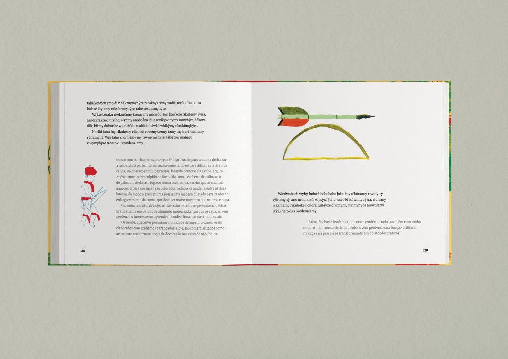 Atividades realizadas: Acompanhamento de oficinas de ilustração, conduzidas pela prof. Ciça Fittipaldi, em aldeias Karajá de Aruanã (GO); curadoria e tratamento das ilustrações produzidas pelos participantes; design de folder e livro impresso, ambos bilíngues, distribuídos em aldeias e escolas municipais nos estados de Goiás, Tocantins e Mato Grosso.
