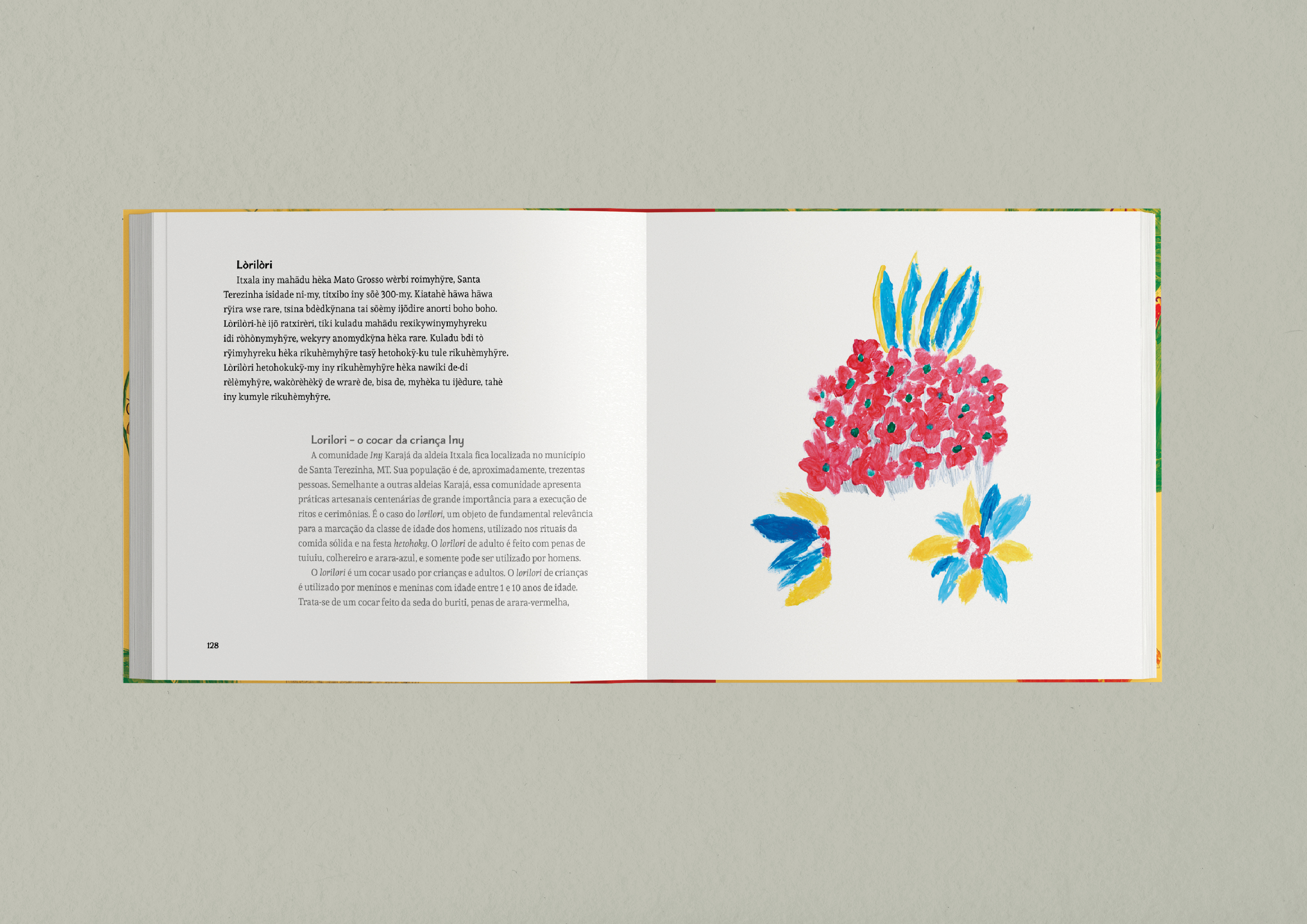 Atividades realizadas: Acompanhamento de oficinas de ilustração, conduzidas pela prof. Ciça Fittipaldi, em aldeias Karajá de Aruanã (GO); curadoria e tratamento das ilustrações produzidas pelos participantes; design de folder e livro impresso, ambos bilíngues, distribuídos em aldeias e escolas municipais nos estados de Goiás, Tocantins e Mato Grosso.