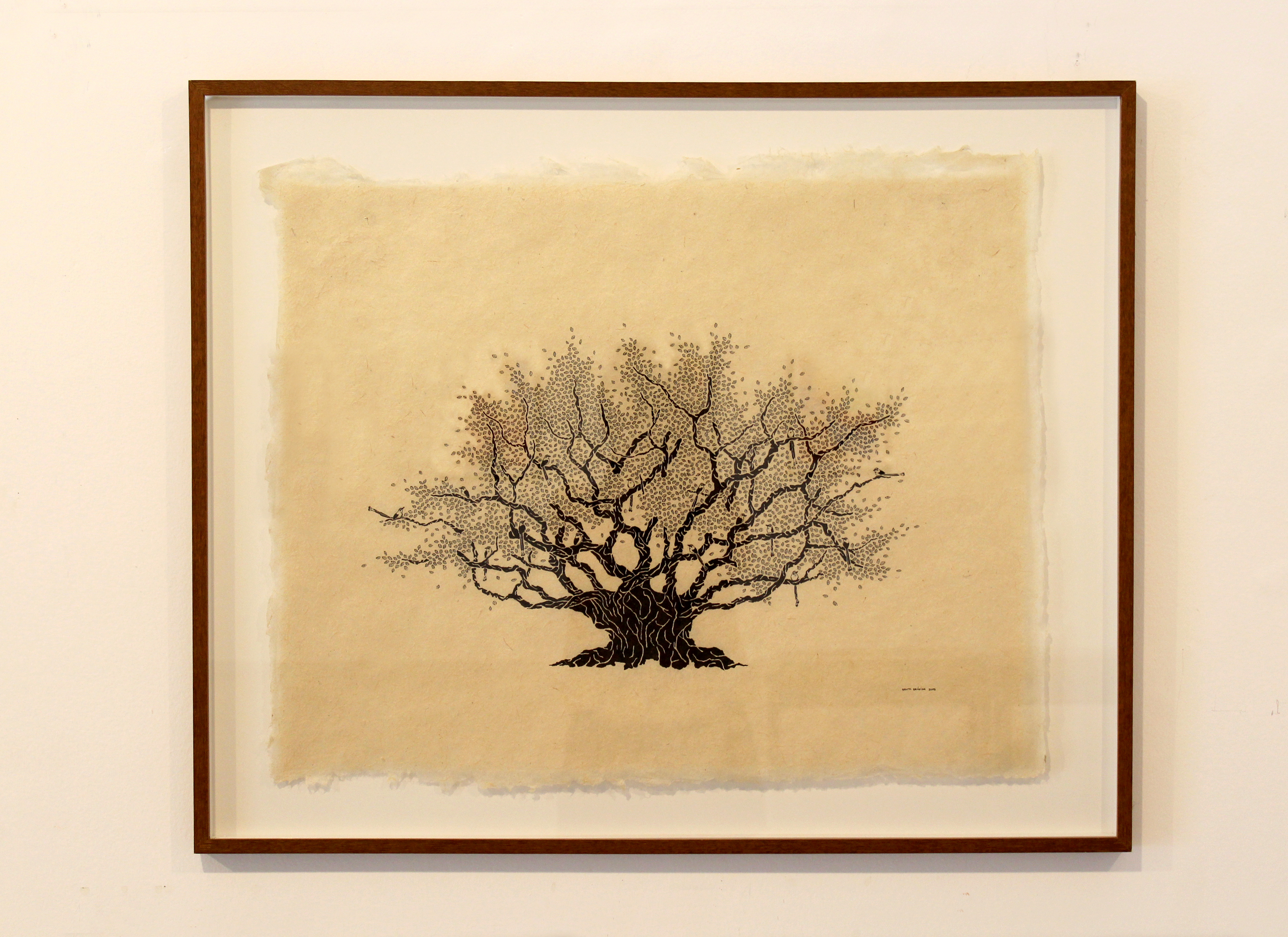 Pequizeiro, 2015. Nanquim sobre fibra de bananeira alvejada. 75x90cm.